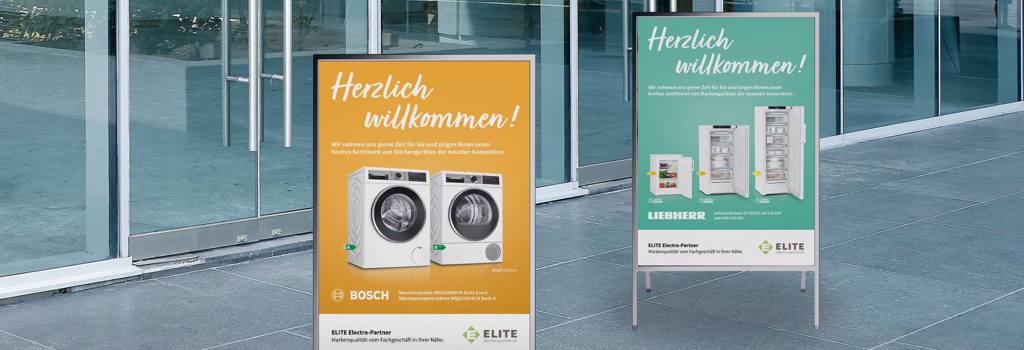 Die Plakate zu den ELITE Exklusivmodellen sind mit verschiedenen Motiven erhältlich und für alle eev-Mitglieder kostenlos. Falls Sie noch keinen Passantenstopper haben oder weitere brauchen, können Sie diese ebenfalls bei uns bestellen.