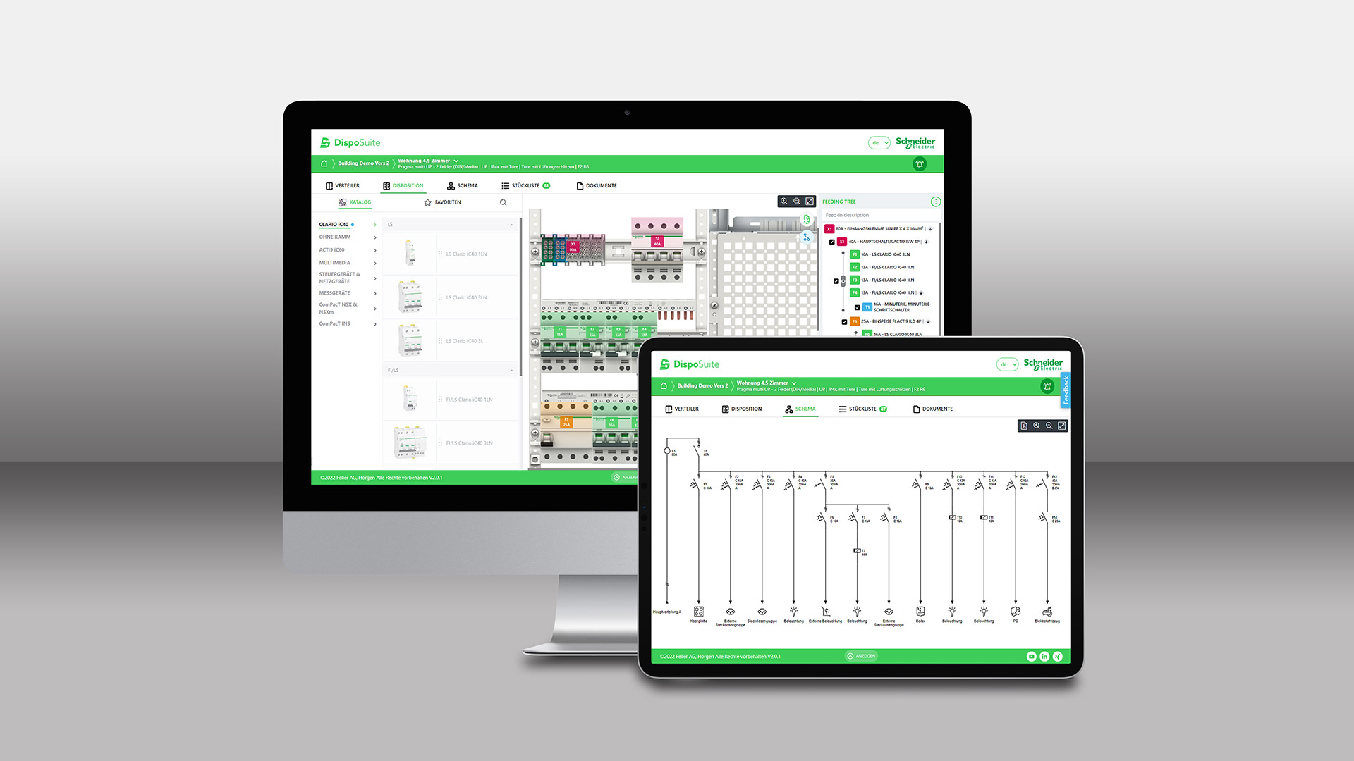 Geeignet für die Konfiguration von Klein-, Zähler- und Energieverteiler mit Reiheneinbaugeräten. Die Software ist speziell auf die Bedürfnisse des Elektrikers und Schaltanlagenbauer ausgelegt, intuitiv aufgebaut und ohne umfangreiche Schulung bedienbar. Dank der Web-Anbindung ist DispoSuite jederzeit auf dem aktuellsten Stand und benötigt keine Software-Installation.