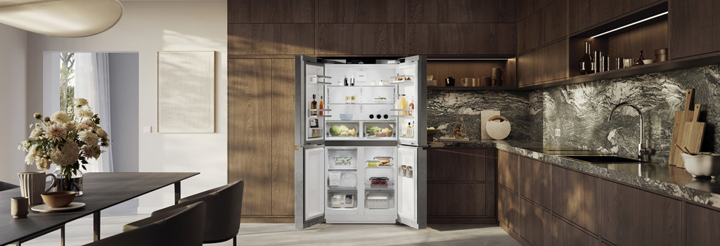 Überdurchschnittlich geräumig kommen die Modelle in zwei Ausführungen daher: als FrenchDoor mit zwei Gefrierschubladen oder als viertürige FrenchDoor-Kühl-Gefrierkombination. Gleichzeitig sind sie in drei Serien erhältlich: Plus, Pure und Prime. Jedes Modell vereint elegante Details und vielseitige Ausstattungsmöglichkeiten, die den individuellen Bedürfnissen gerecht werden.