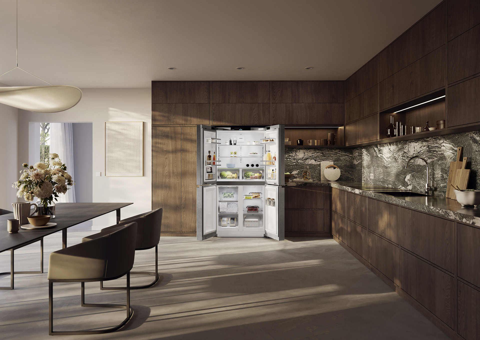 Die neuen FrenchDoor-Geräte von Liebherr setzen neue Massstäbe in der Welt der Kühl-Gefrierkombinationen. Mit einem grosszügigen Stauraum, modernsten Frischetechnologien, hochwertigen Materialien und stilvoller Beleuchtung vereinen sie Funktionalität und Design. Die French-Door-Geräteserie von Liebherr-Hausgeräten erhielt bereits zwei renommierte Design-Auszeichnungen, den «iF Design Award 2025» und den «Red Dot Design Award 2025». Das edle Design und die mehrwertstiftenden Frischetechnologien der geräumigen Kühl-Gefrierkombination überzeugten auch die beiden unabhängigen Jurys.