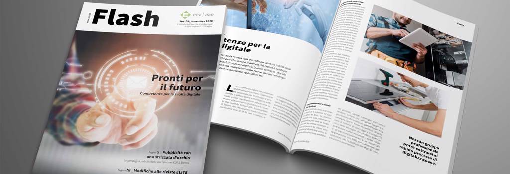 Flash fornisce informazioni riguardo a tecnologie elettriche e tecniche di installazione innovative, nuove applicazioni ed elettrodomestici con elevata efficienza energetica. Inoltre riferisce sullo sviluppo dei singoli segmenti di mercato ed analizza tendenze e opportunità. Tramite inviti a svariate manifestazioni, la rivista incoraggia il contatto tra l’industria, il commercio e i professionisti del settore. Flash viene pubblicato dieci volte l’anno in tre diverse edizioni linguistiche. I soci e i partner convenzionati lo ricevono gratuitamente. La rivista offre impulsi d’ogni genere per tutte le maestranze e non dovrebbe mai mancare sugli scaffali dei giornali all’interno delle aziende.